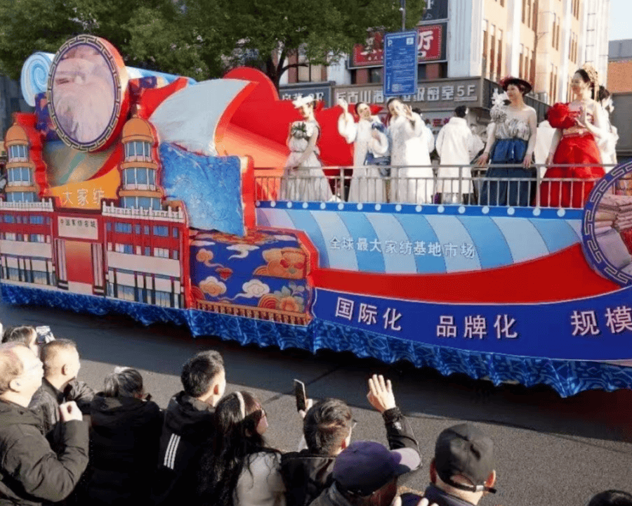 花车所至,万人空巷。人们追随着流动的锦绣,惊叹于被套、被子穿出国际范的设计巧思,更感动于南通品牌走向世界的荣光。